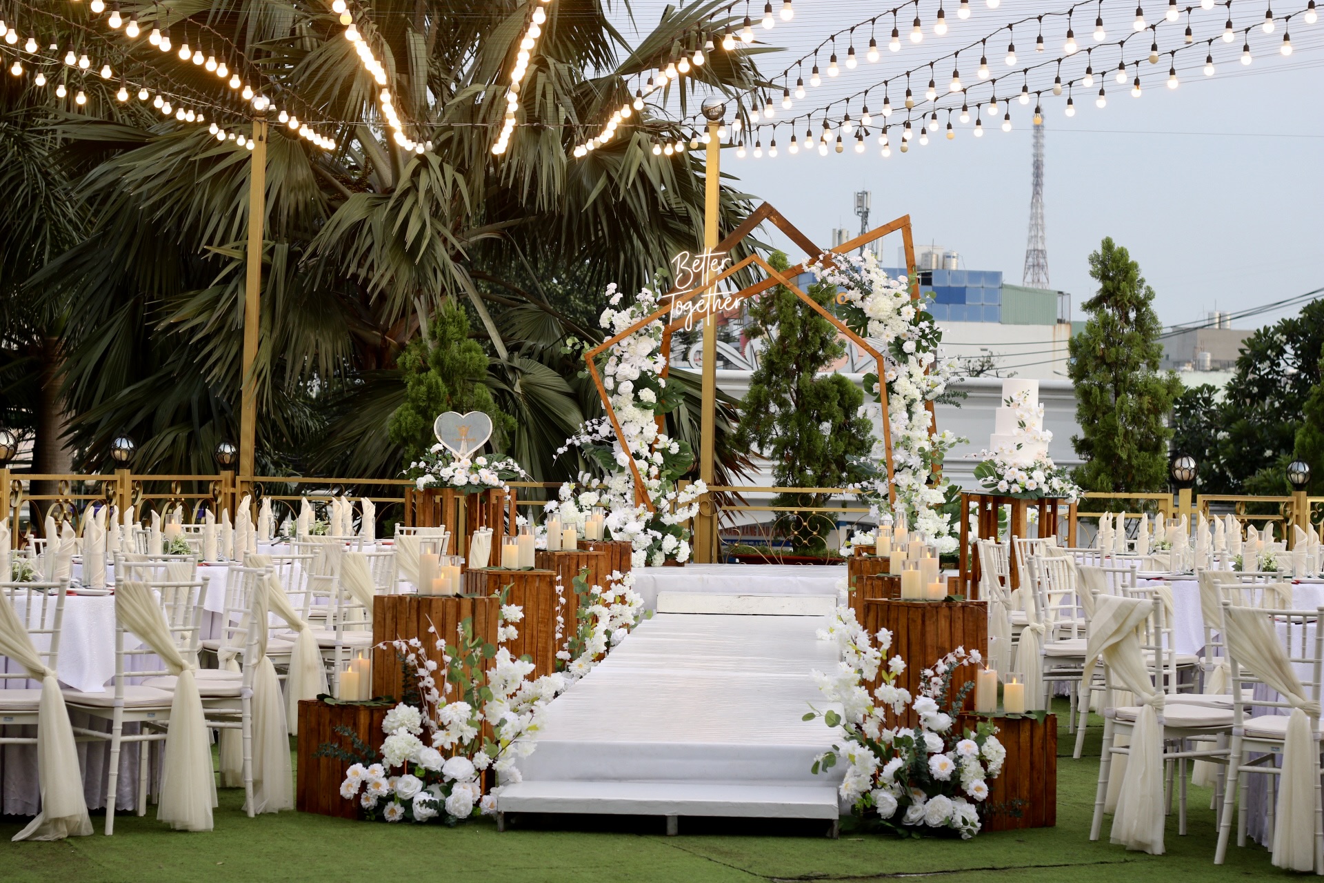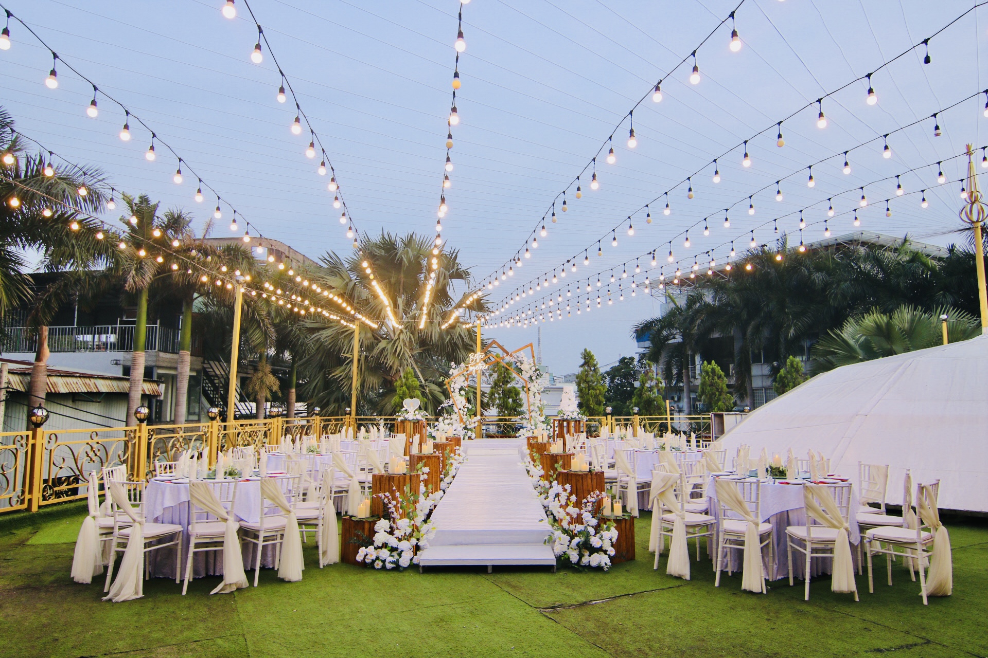 Không gian mở ngoài trời với thiết kế cực kỳ linh động giúp sảnh Garden có thể đáp ứng bất kỳ ý tưởng sáng tạo nào, từ nghi thức đám cưới phong cách Tây Phương cho đến những bữa tiệc được đậm dấu ấn riêng.